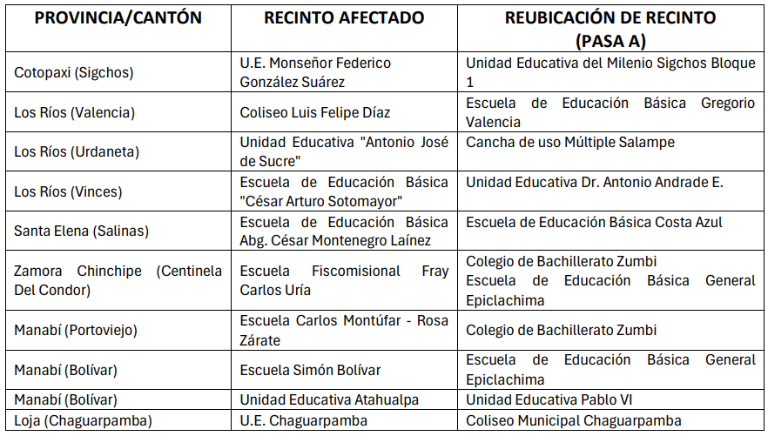 El pasado domingo, la presidenta del CNE, Diana Atamaint, ya había anticipado que se evaluaban cambios en los recintos electorales ante cualquier evento adverso, especialmente debido a las intensas precipitaciones.