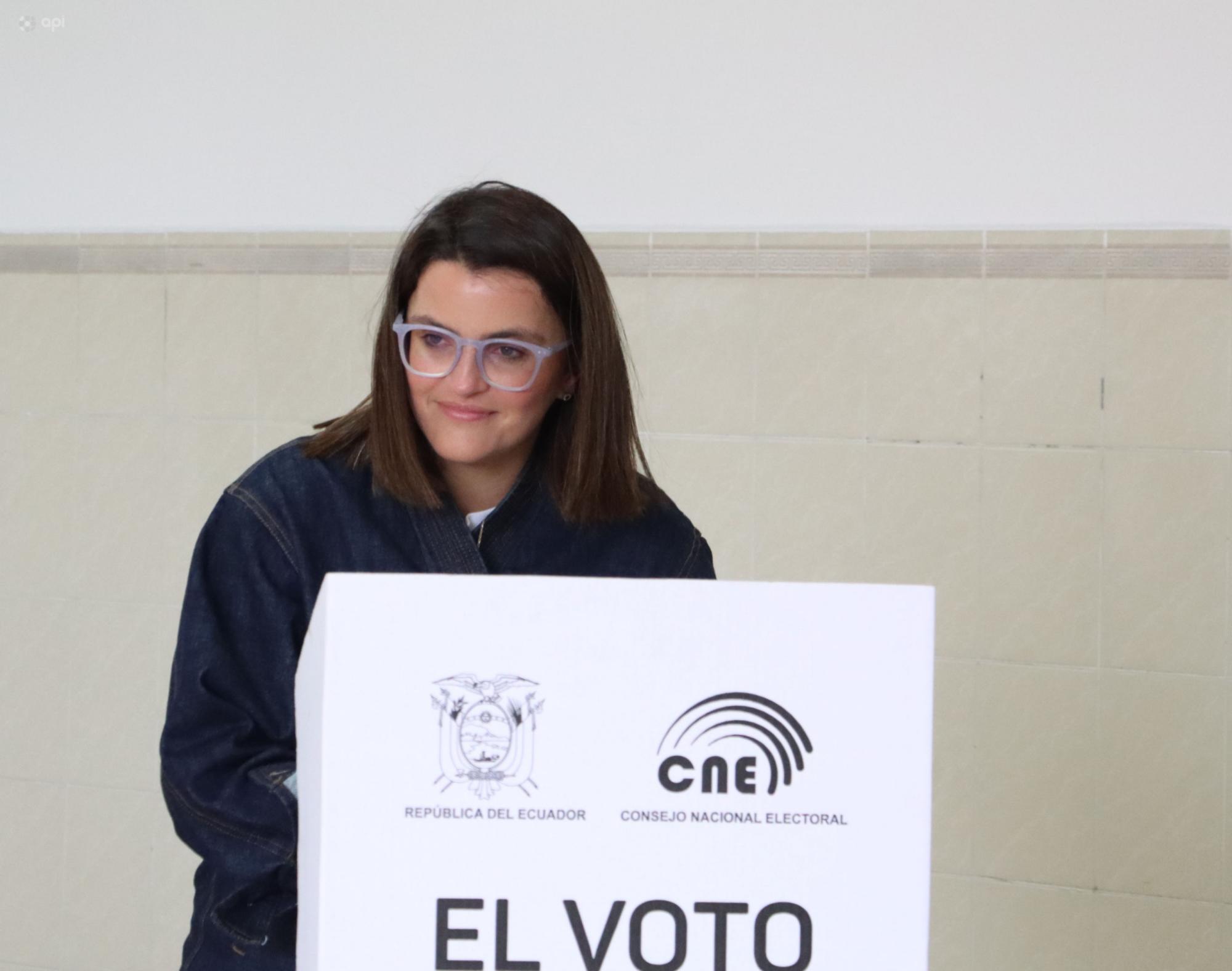 La compañera de fórmula del presidente Daniel Noboa, María José Pinto, llegó a la Universidad Tecnológica Equinoccial (UTE), ubicada en el norte de la ciudad de Quito, para sufragar.