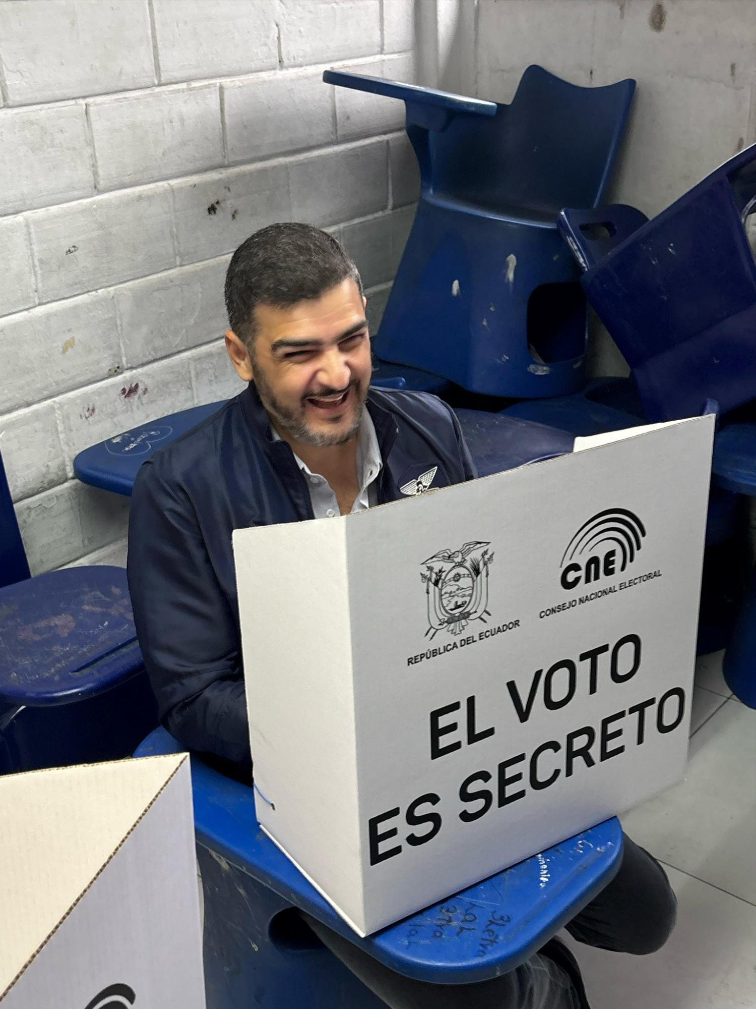 El burgomaestre de la ciudad de Guayaquil, Aquiles Alvarez, anunció que ejerció su derecho al voto, compartiendo una fotografía en la que aparece sentado frente al biombo electoral en un colegio electoral de la urbe portuaria.
