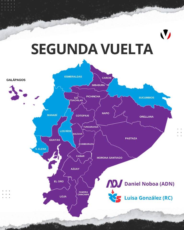 Aunque la candidata correísta afirmó en rueda de prensa que no reconocerá los resultados, pese a los casi 12 puntos de diferencia, los datos demuestran una respuesta, pero ¿qué cambió realmente en la votación? A simple vista, el mapa electoral revela una diferencia clave respecto a la primera vuelta: Daniel Noboa logró arrebatarle cinco provincias a su rival. Veamos cómo queda pintado el Ecuador.