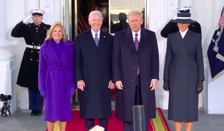 Trump llegó acompañado de su esposa, Melania, y fue recibido en el pórtico norte de la Casa Blanca por Biden y la primera dama, Jill Biden.