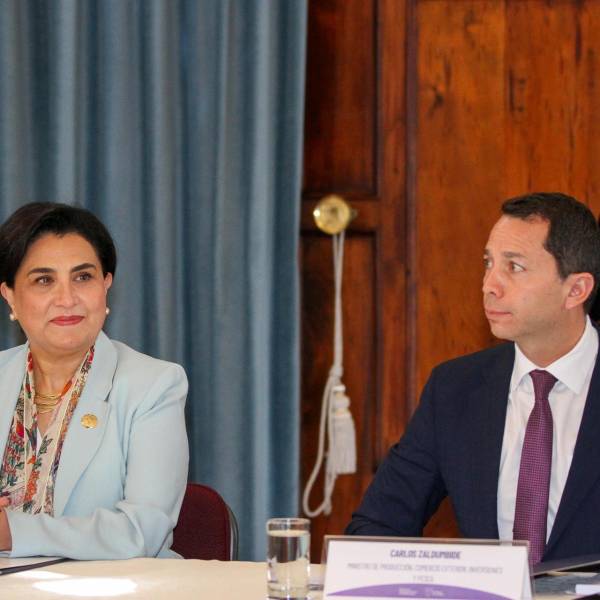 La canciller ecuatoriana explicó en una rueda de prensa junto a otros ministros del Ejecutivo y líderes de gremios empresariales y exportadores que, desde antes de que Trump impuso estos aranceles, el Gobierno y el sector privado ya trabajan en lograr mejoras arancelarias con Estados Unidos, su principal socio comercial.