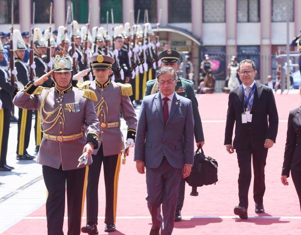 Una cápsula de protección interna con agentes colombianos custodiaba al mandatario. En tanto, las Fuerzas Armadas del Ecuador brindaron seguridad perimetral externa, sin acceso al entorno próximo al presidente del país vecino.