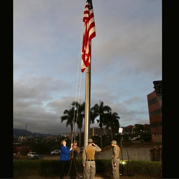 La bandera estadounidense fue retirada el 14 de marzo de 2019 de la embajada en Caracas.