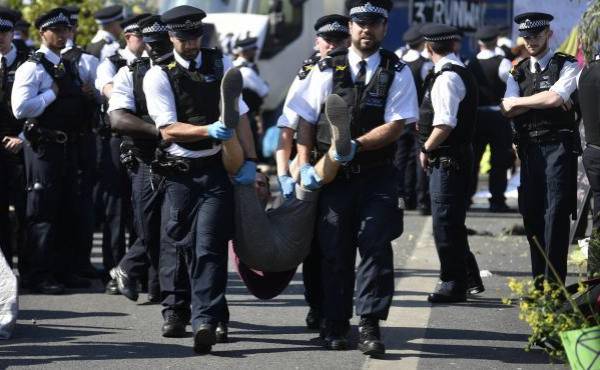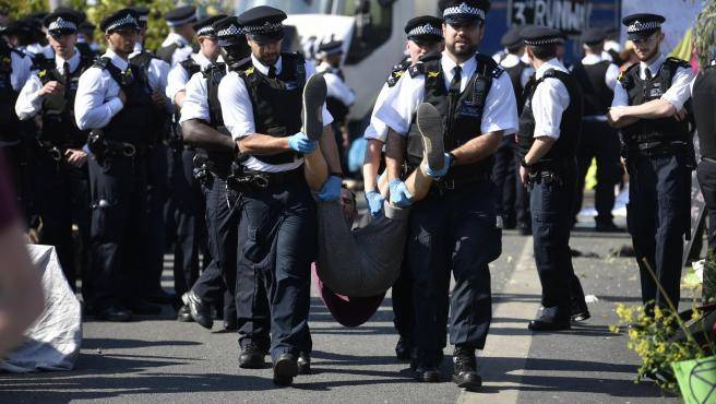La policía británica fue duramente criticada el miércoles por haber detenido a varios periodistas, retenidos durante horas, cuando cubrían protestas de activistas contra el cambio climático.