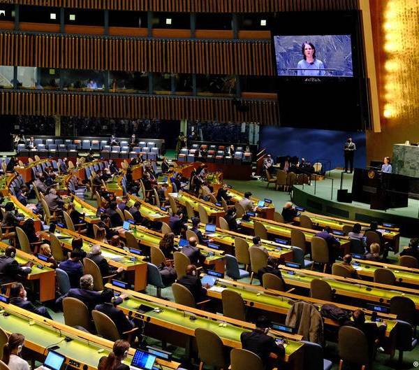 En la sala de la Asamblea General, varios países habían instalado sobre la mesa de su delegación peluches de jirafas, osos o conejos como símbolo de que el voto en la resolución era en apoyo a las jóvenes generaciones.