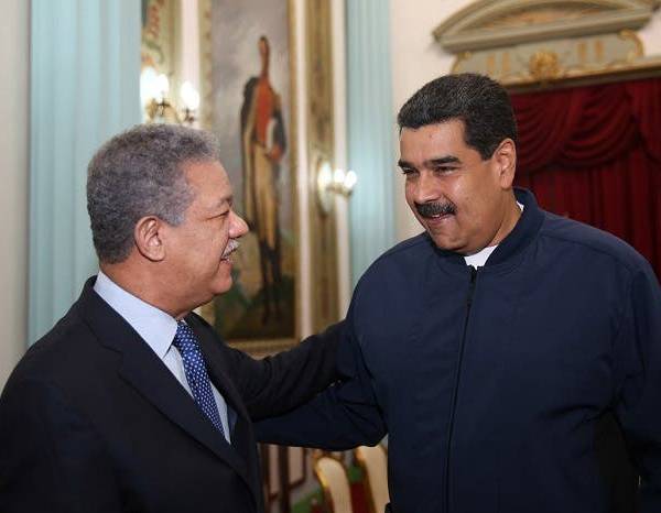 El canal estatal VTV transmitió imágenes del exgobernante dominicano entrando al palacio presidencial de Miraflores escoltado por la canciller, Delcy Rodríguez, y por su hermano, el alcalde del municipio caraqueño de Libertador, Jorge Rodríguez.