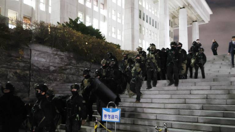 La Asamblea se encuentra rodeada por un amplio dispositivo policial, poco después de que Yoon proclamara la ley marcial y de que el mando militar anunciara la prohibición de toda actividad política, incluidas las manifestaciones o protestas.