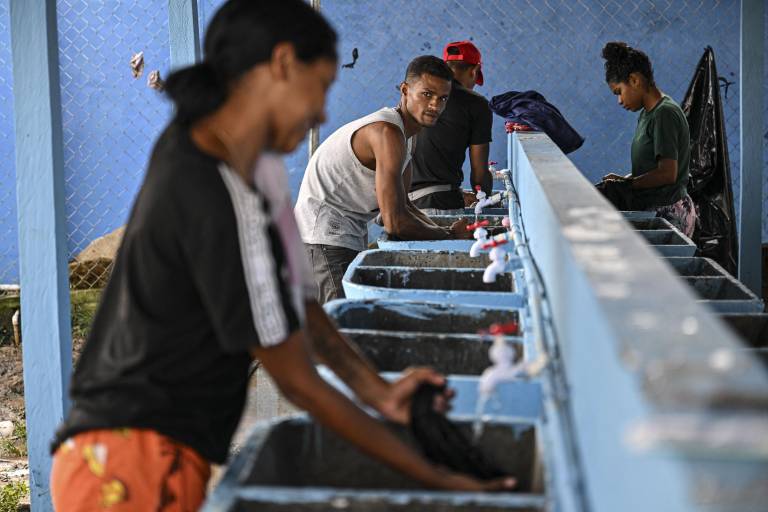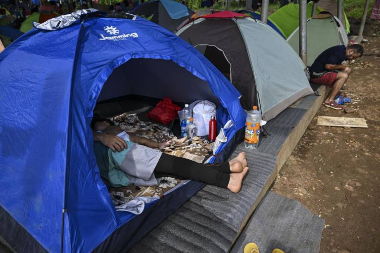 En Lajas Blancas, los caminos son de tierra y los migrantes duermen en barracones de madera en colchones en el piso y entre ropa tendida. Afuera hay baños comunales junto a un pequeño lavadero y varias duchas improvisadas.