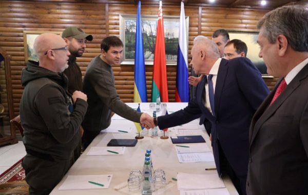 Poco después de las 18.00 hora local (15.00 GMT), las dos delegaciones se sentaban a la mesa y sus miembros se daban la mano -los representantes ucranianos con atuendo de color verde olivo estilo militar y la delegación rusa nuevamente con trajes formales- según pudo verse en las imágenes difundidas por la agencia oficial bielorrusa BELTA.
