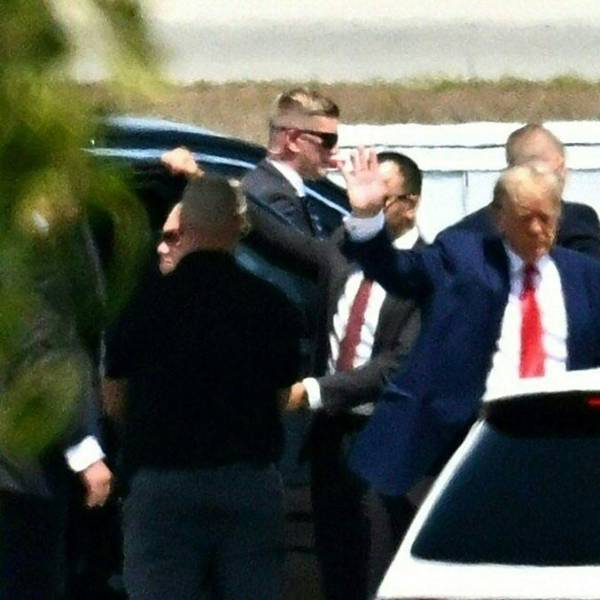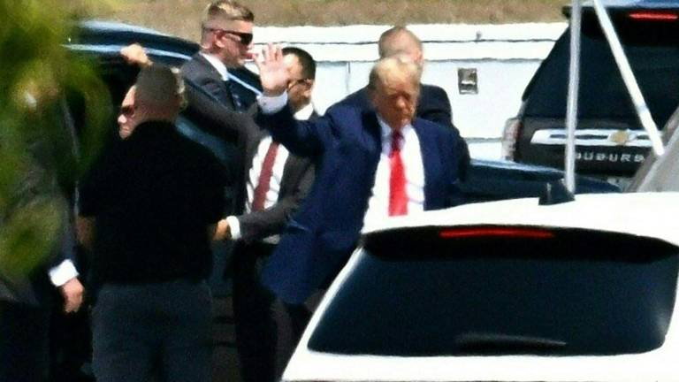 El multimillonario, el primer expresidente de Estados Unidos en declarar ante un tribunal como imputado, abandonó su mansión seguido por una caravana de una docena de vehículos.