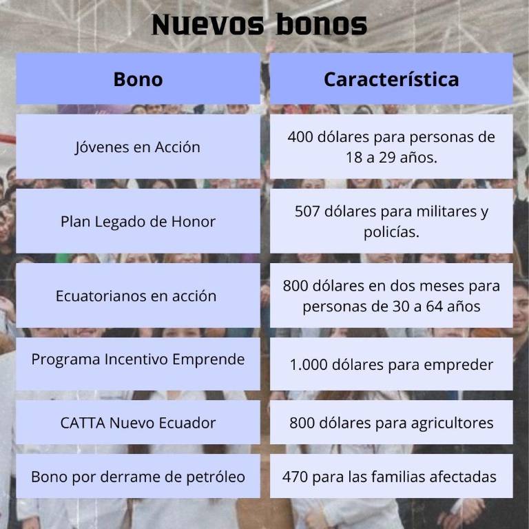 A estos estos bonos hay que sumarle la orden que dio el mandatario al Ministerio de Inclusión Económica (MIES) para que reactive a los usuarios que han sido excluidos de ciertos bonos. Con la actualización de Registro Social, algunos han salido de la lista de beneficios.