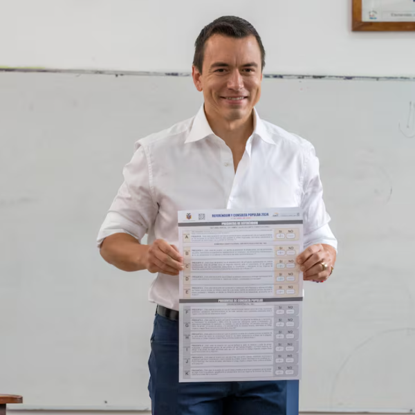 Esta será la segunda vez que el presidente Noboa convoque a las urnas para proponer cambios a la Constitución. En abril de 2024, a pocos meses de iniciado su primer mandato, los ecuatorianos ya participaron en un referéndum y consulta popular con once preguntas enfocadas en seguridad, justicia, empleo y arbitrajes internacionales.