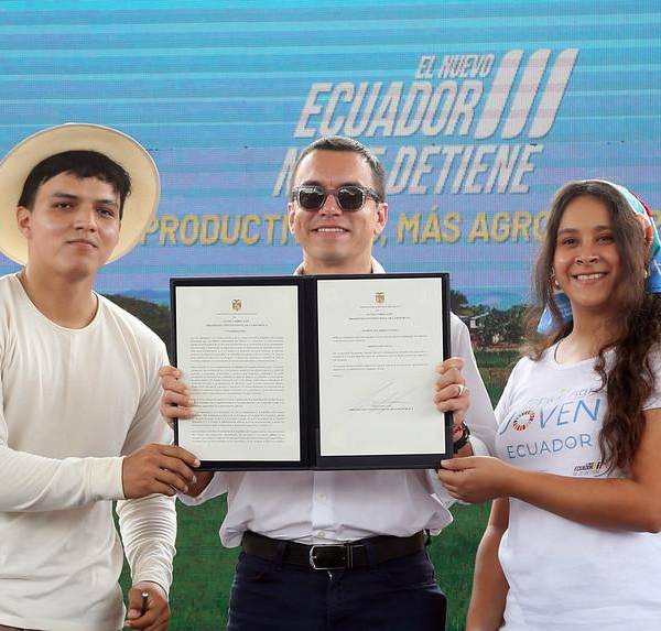 El presidente de la República, Daniel Noboa, firmó este miércoles 6 de agosto el Decreto Ejecutivo No. 77 con el que se crea el Comité Interinstitucional 'AgroJoven'. Esta instancia será la encargada de formular una política agropecuaria que fomente el empleo, la participación y la gobernanza de los jóvenes en zonas rurales.