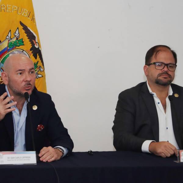 El ministro del Interior, John Reimberg, y el de Defensa, Gian Carlo Loffredo, pidieron este jueves "apoyo" a la ciudadanía en una señal de presión hacia la Corte Constitucional para que "devuelva" las leyes que fueron parcialmente suspendidas por el alto tribunal y que habían sido promovidas por el presidente, Daniel Noboa.