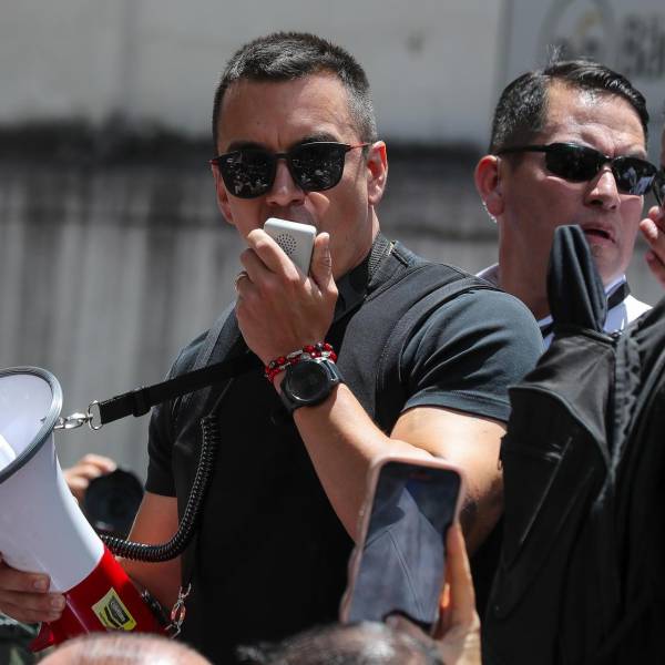 Tras un breve discurso, el presidente Daniel Noboa se retiró junto con la escolta presidencial, mientras algunos simpatizantes se quedaron en los alrededores de la Corte Constitucional.