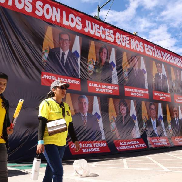 Las estructuras, que mostraban fotografías de los jueces junto a sus nombres nombres, fueron ubicadas la tarde del martes en la avenida 6 de Diciembre, entre las avenidas Colón y Patria. En estas se leía: “Estos son los jueces que nos están robando la paz. Firmaron contra leyes que nos protegían”.