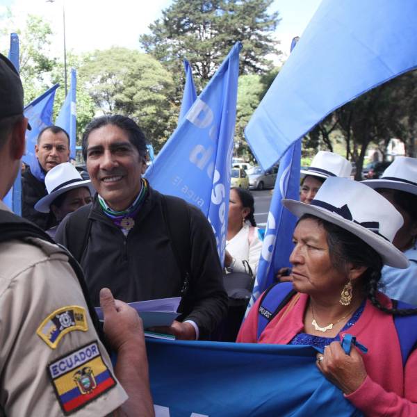 El líder indígena viajó hasta Quito junto con comunidades de la provincia del Azuay, que se oponen al proyecto minero Loma Larga por el supuesto impacto que tendría la explotación de minerales contra la naturaleza.