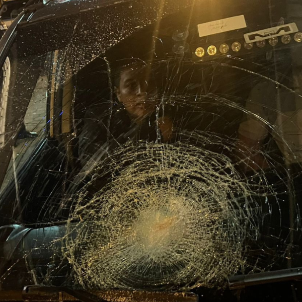 El mensaje fue acompañado de imágenes con los vidrios de los vehículos rotos, aparentemente por piedras lanzadas por los manifestantes en la provincia de Imbabura.