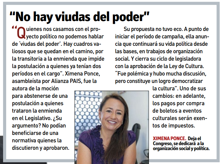 El Congreso de los sumisos termina su gestión en 2017, casi un centenar de sus 137 votos fueron leales al Ejecutivo. Son 15 legisladores nacionales, 116 provinciales, 6 del exterior. Algunos buscan reelección, otros no pueden seguir por haber cumplido dos períodos consecutivos. Hay caras nuevas. ¿Cómo será la composición del nuevo Legislativo? Verdesoto Custode realizó una simulación que le permite anticipar una previsión: “Una mayoría de dos tercios, como Alianza PAIS tuvo en 2013, muy difícilmente podrá repetirse”. (Ver especialista). Los resultados de los comicios 2017 deben verse en dos dimensiones: Quién llega a Carondelet. Qué fuerzas imperan en el Legislativo. Porque algo importante está en juego. La gobernabilidad de los próximos cuatro años.