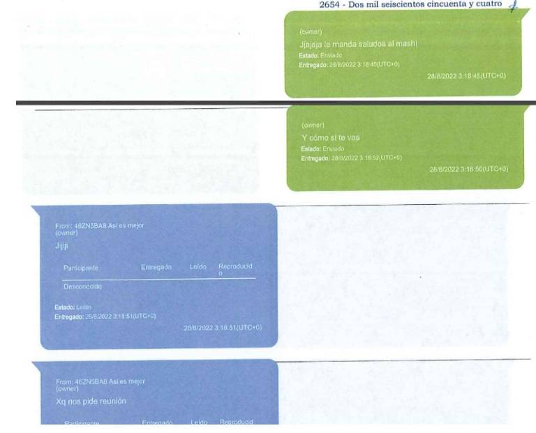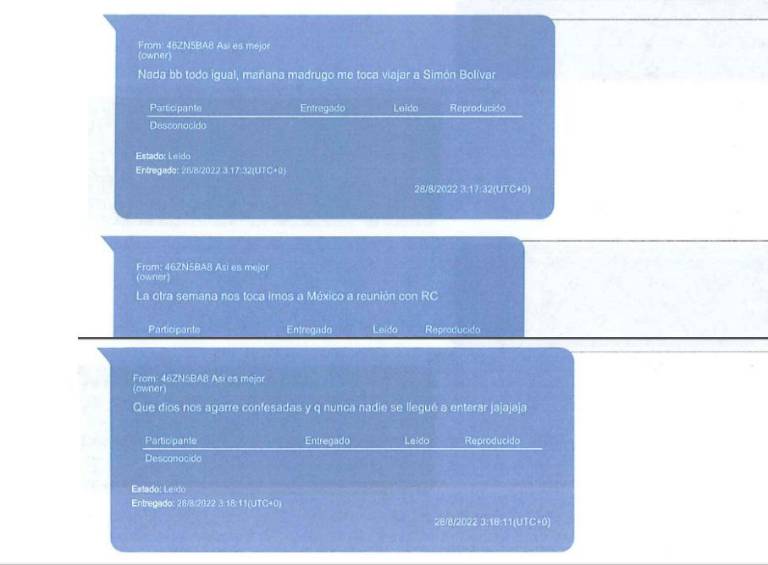 Este lunes 18 de diciembre de 2023, la Fiscalía General del Estado (FGE) hizo pública una parte de la pericia de extracción de los teléfonos, en los que se encontraron polémicos mensajes que revelan las relaciones, negociaciones, entrega de sobornos y manipulación del sistema de justicia y de algunos de sus operadores.