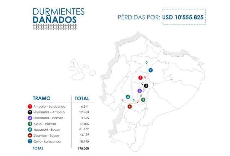 Se identificaron daños que afectaron la funcionalidad de varios tramos de la vía férrea y dejaron tres rutas inoperativas, por lo que el incumplimiento ocasionó pérdidas por más de $ 10.5 millones para la Empresa Ferrocarriles del Ecuador (FEEP).