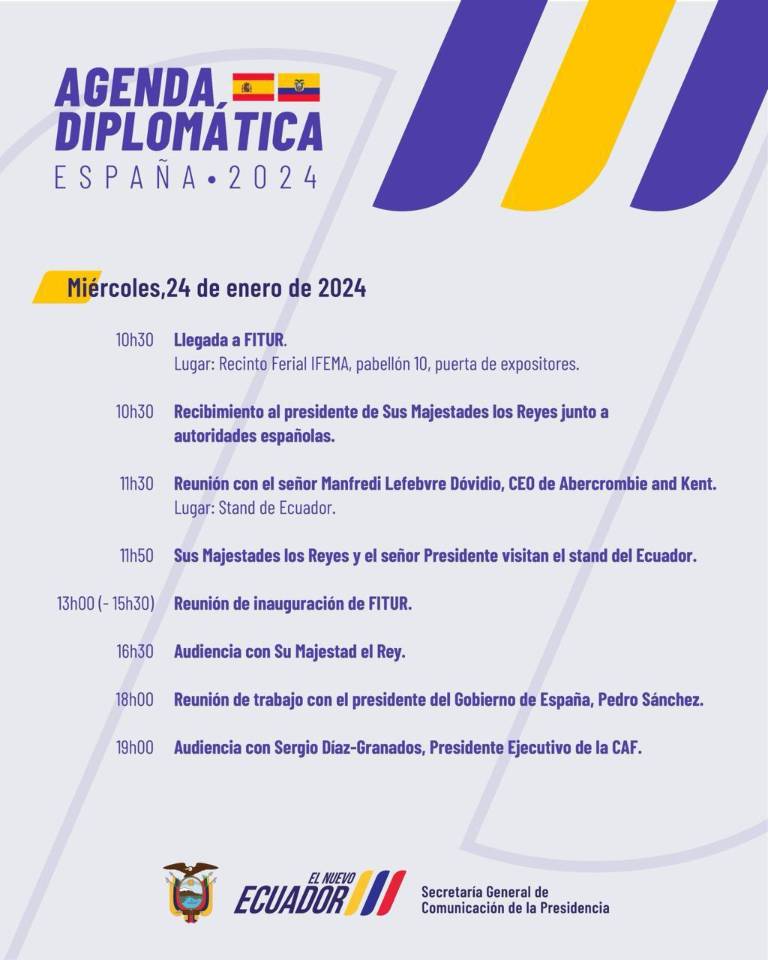 El presidente de la República, Daniel Noboa, participó en la inauguración de la Feria Internacional de Turismo (FITUR) que se celebra en Madrid, junto a los reyes de España, Felipe VI y Letizia, este miércoles 24 de enero de 2024.