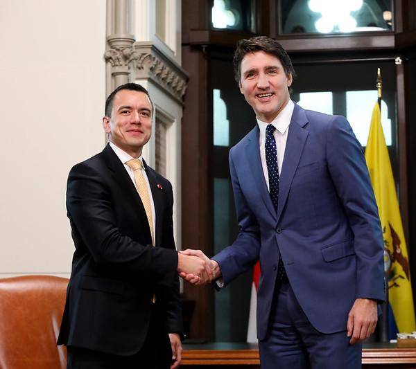"Estamos lanzando las negociaciones para un acuerdo de libre comercio. Estamos hablando sobre todas las diferentes formas en la que podemos trabajar juntos no solo para crear oportunidades para los ciudadanos sino para crear soluciones a los muchos problemas que el mundo encara", añadió Trudeau que calificó a Noboa como un "líder visionario".