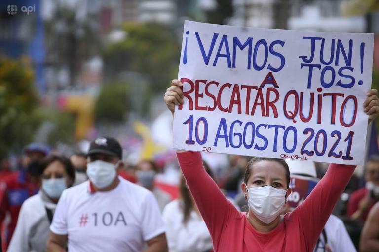En este grupo también están gremios empresariales y varios colectivos sociales, quienes denominaron a la marcha como “10A por la dignidad de Quito”. Ellos exigen resolver el enredo judicial que mantiene en disputa por la alcaldía a Yunda y Guarderas.