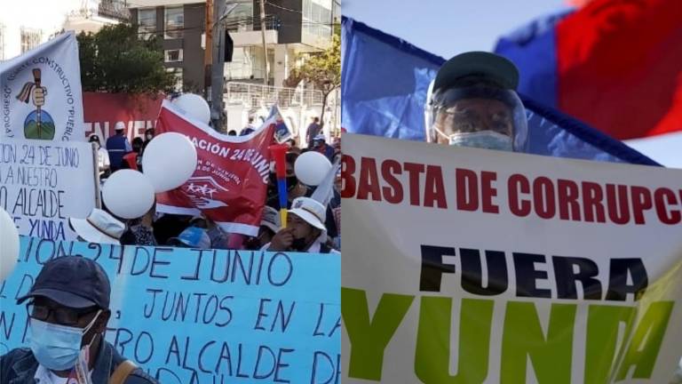 “Respeto a la democracia”, “los golpistas no pasarán, con el pueblo se toparán”, “Yunda amigo, el pueblo está contigo”, son algunas frases que se escuchan en el recorrido del grupo que respalda la alcaldía de Yunda.