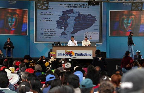 Por lo general, cómo indica el reportaje de Vistazo, la locación de un enlace es previamente estudiada por la Secom y la Dirección Nacional de Informes Gubernamentales que coordina, diseña y ejecuta seis productos comunicacionales, uno de ellos el Enlace Ciudadano. A pesar de que cuentan con una programación a futuro, es entre martes y miércoles que se ratifica o rectifica el lugar acordado.