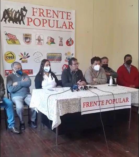 El Frente Popular (FP), conformado por la UGTE, UNE y FEUE, realizó una rueda de prensa para anunciar que el próximo 19 de enero de 2022 arrancarán las movilizaciones nacionales en contra de medidas tomadas por el gobierno de Guillermo Lasso.