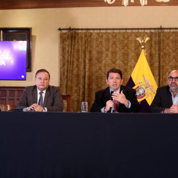 El ministro de Gobierno, Francisco Jiménez; el ministro del Interior, Juan Zapata; e Iván Correa, secretario de la Administración Pública del Gobierno, se pronunciaron en rueda de prensa, este viernes 2 de enero de 2023, acerca del "Caso Encuentro" que es investigado por Fiscalía.