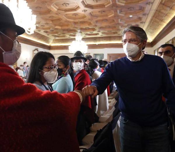Lasso e Iza, máximo representante de la Confederación de Nacionalidades Indígenas (Conaie), se reunieron en noviembre para desactivar una crisis social desatada por incrementos de los combustibles, los cuales habían derivado en protestas que dejaron 37 detenidos y ocho policías heridos.