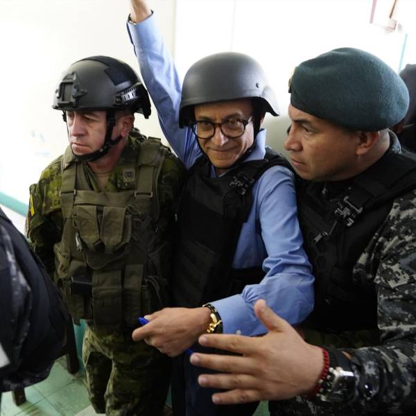 Al recinto electoral ubicado en la escuela República de Bolivia, en Quito, Zurita ejerció su derecho, protegido con chaleco antibalas y un casco especial.