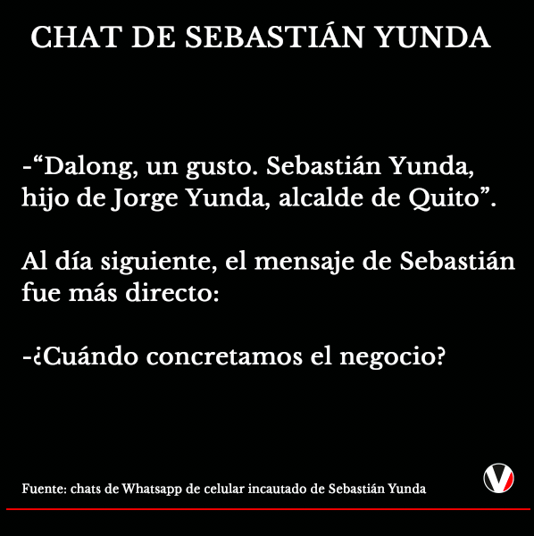 Además, los chats arrojan indicios sobre pagos irregulares al hijo de Yunda, por parte de 'Papá Dalong', como él llama a un empresario chino radicado en Ecuador.