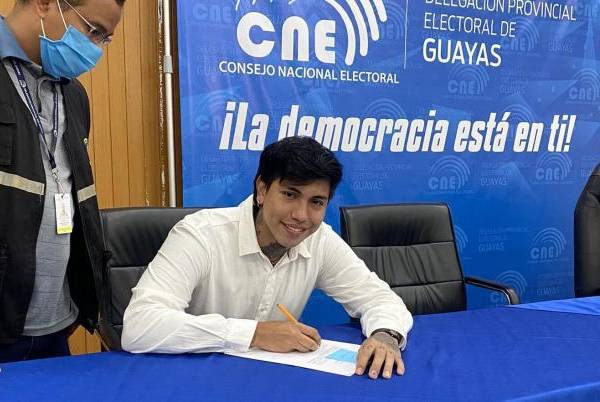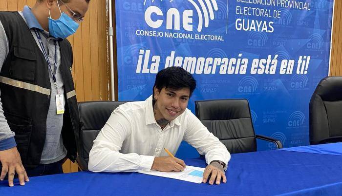 Ese día, el joven subió a Instagram y a Twitter fotos en la Delegación Electoral del Guayas junto con Jimmy Jairala, candidato para la Alcaldía de Guayaquil, mientras firmaba documentación.
