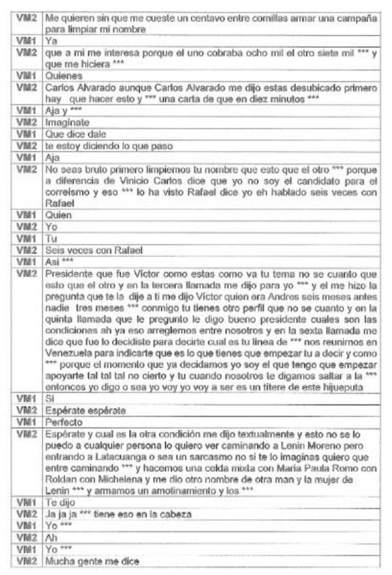 De acuerdo con las transcripciones de audio, video y conversaciones telefónicas, el general en servicio pasivo Víctor Arauz habría mantenido conversaciones con Correa, quien expresó su deseo de ser candidato del correísmo. Sin embargo, este anhelo habría venido acompañado de una condición alarmante: la encarcelación de varios funcionarios del gobierno anterior, incluyendo a María Paula Romo, el expresidente Lenín Moreno y otros.