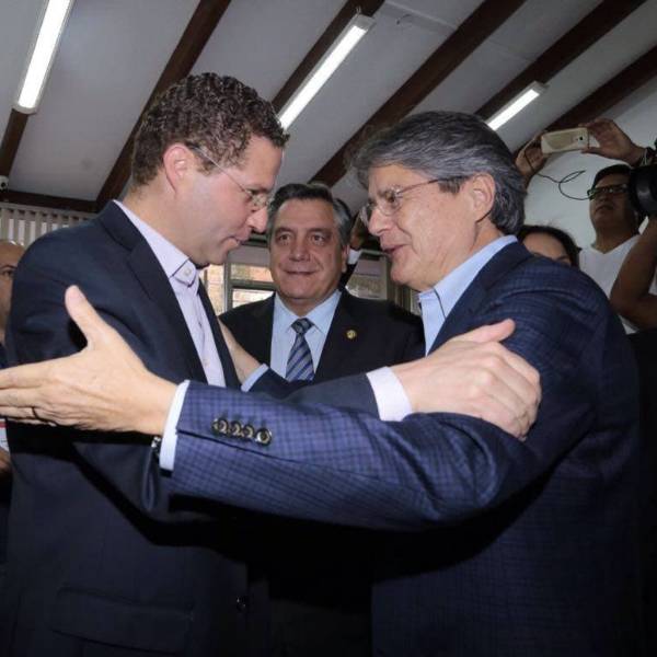 El candidato presidencial por CREO, Guillermo Lasso, y el alcalde de Quito, Mauricio Rodas, quien lidera el movimiento SUMA, se reúnen este miércoles 19 de octubre de 2016 en Quito.