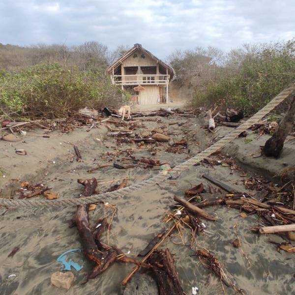 Este campamento regentado por la Fundación Contamos Contigo Ecuador, y que había logrado tener un éxito de eclosión de huevos de tortuga del 80%, hoy está despedazado por fenómenos naturales, que cada año se vuelven más devastadores a causa del cambio climático.