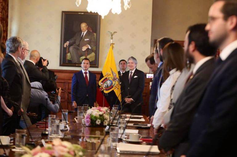La convocatoria de este consejo está en manos todavía del presidente saliente, Guillermo Lasso, con quien Noboa se reunió este mismo martes por primera vez en el palacio presidencial de Carondelet para preparar la transición.