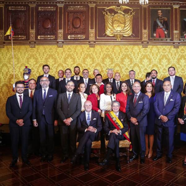 El gabinete estará integrado por César Monge, como ministro de Gobierno (Interior); Manuel Montalvo, en la cartera de Relaciones Exteriores y Movilidad Humana; Fernando Donoso, en Defensa; Simón Cueva en Economía y Finanzas, y María Brown, en Educación.