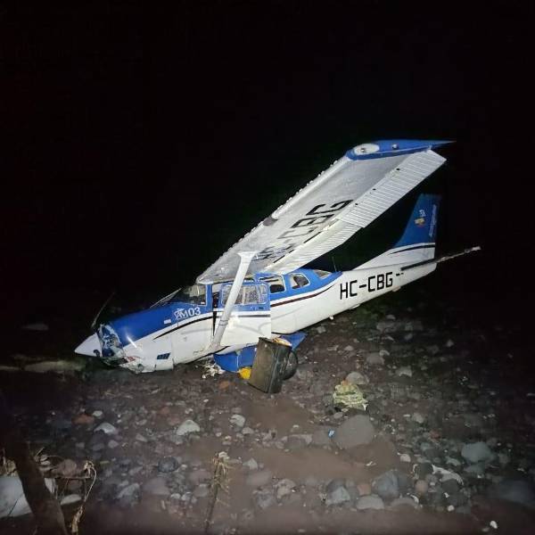 Una avioneta se estrelló cerca del río Upano, en la parroquia Río Blanco, en la ciudad de Macas, provincia de Morona Santiago la noche del viernes 8 de marzo de 2024. A bordo viajaban cuatro personas que resultaron heridas en el accidente.