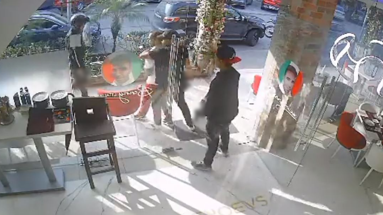 En la grabación del incidente se puede observar a los falsos uniformados permanecer a las afueras del local antes de ingresar, aparentemente vigilando las inmediaciones.
